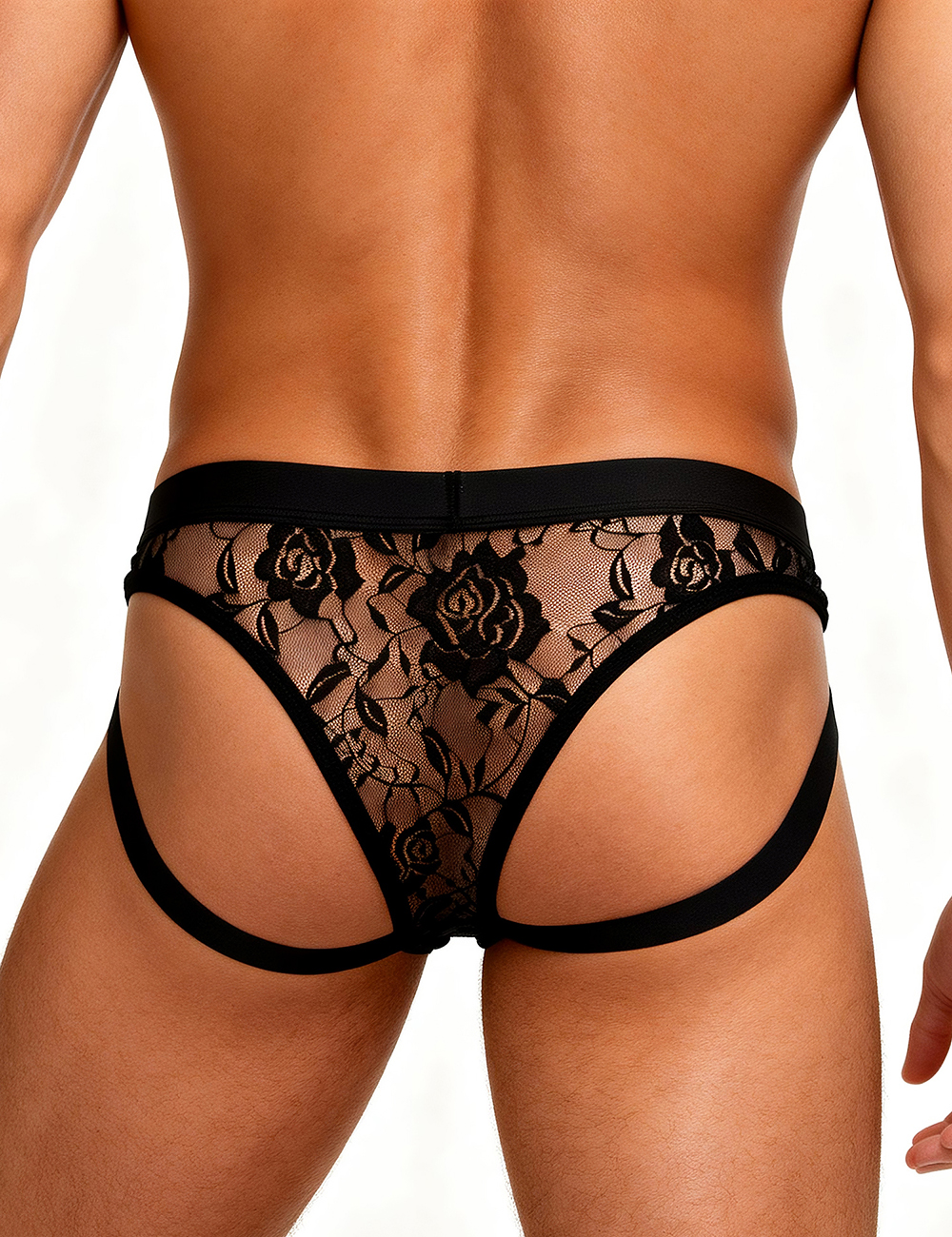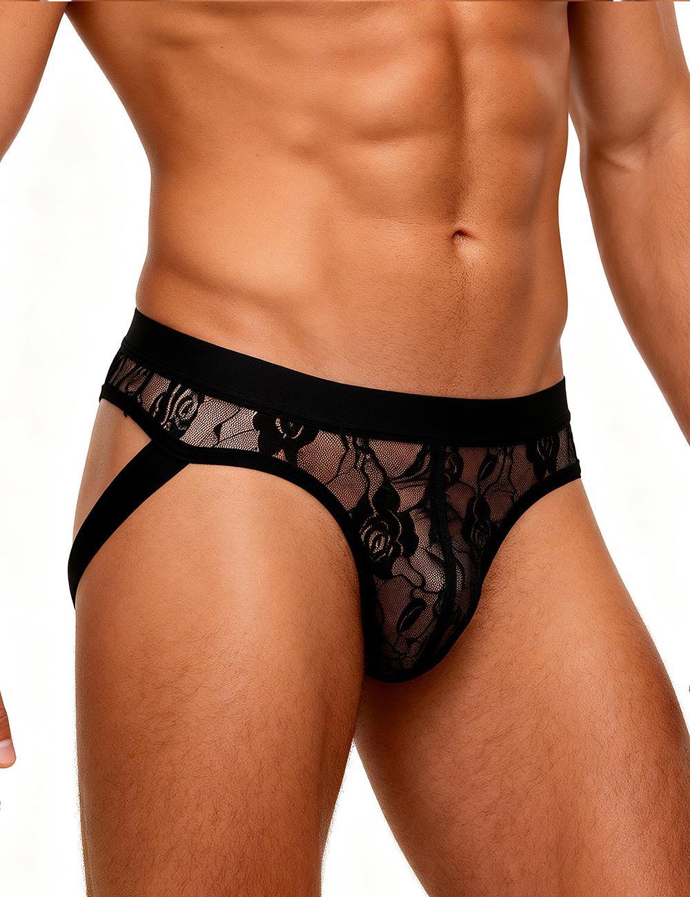 Black Lace See Through Elastic Band Men Jock Underwear