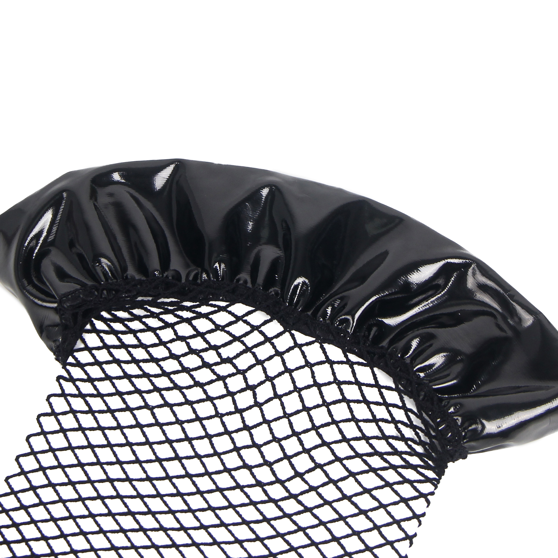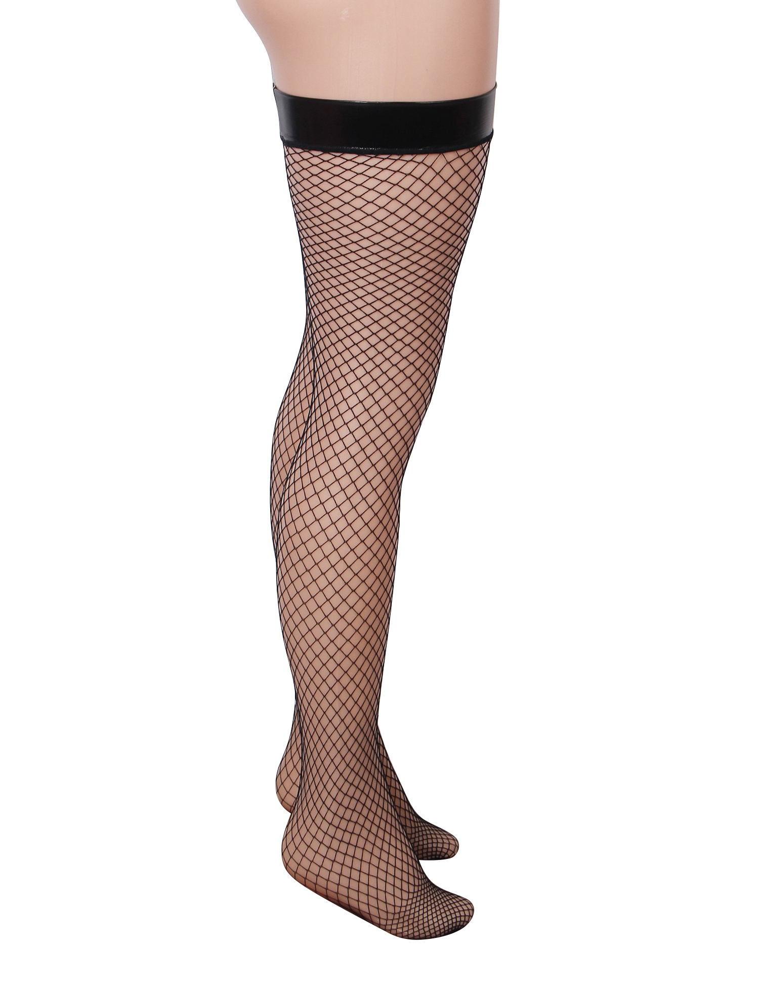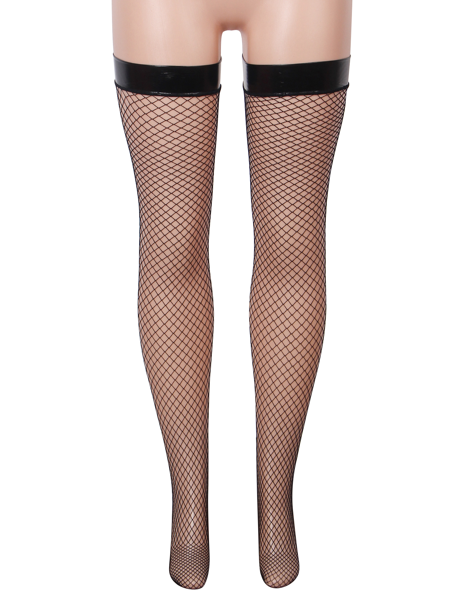 Black fishnet patent leather stockings