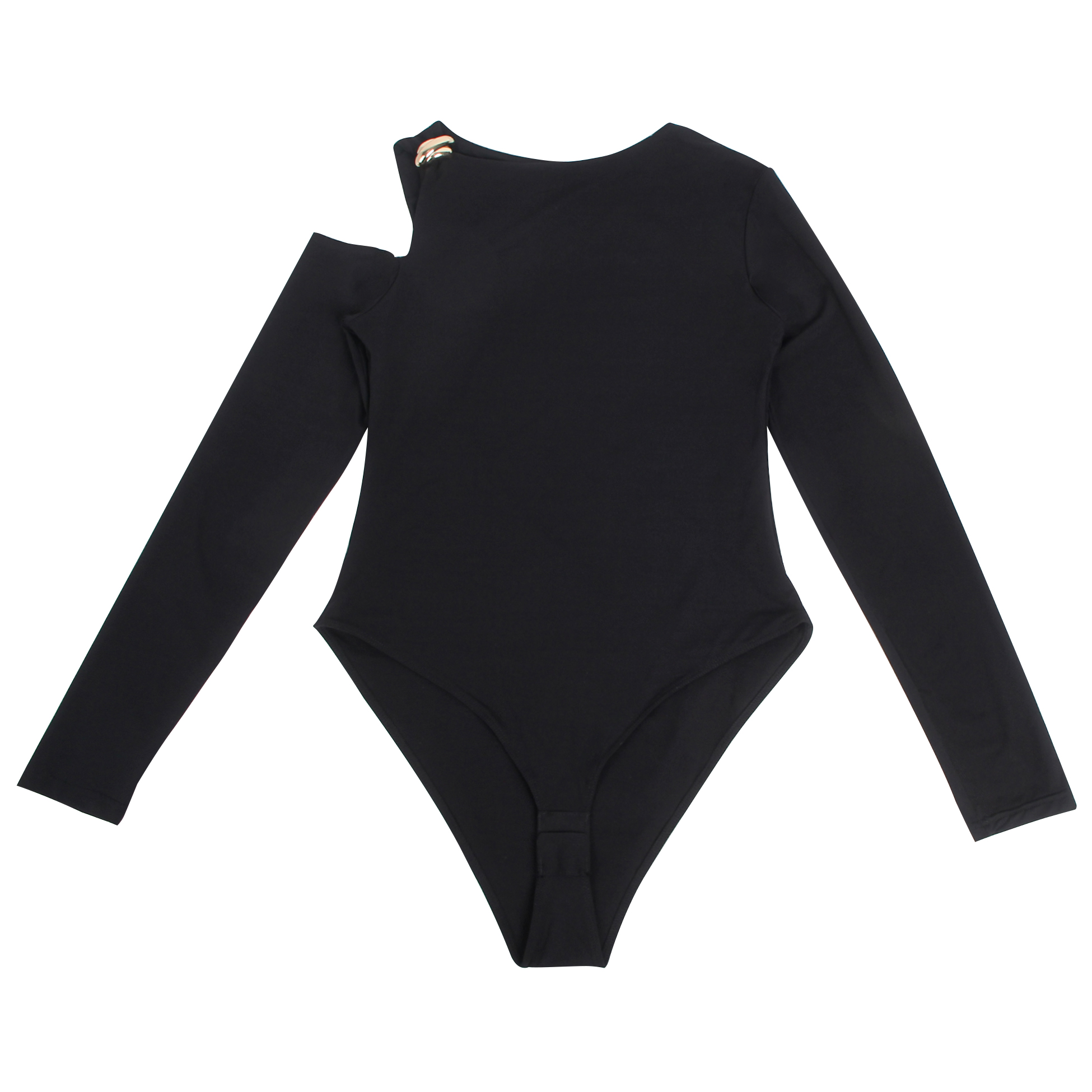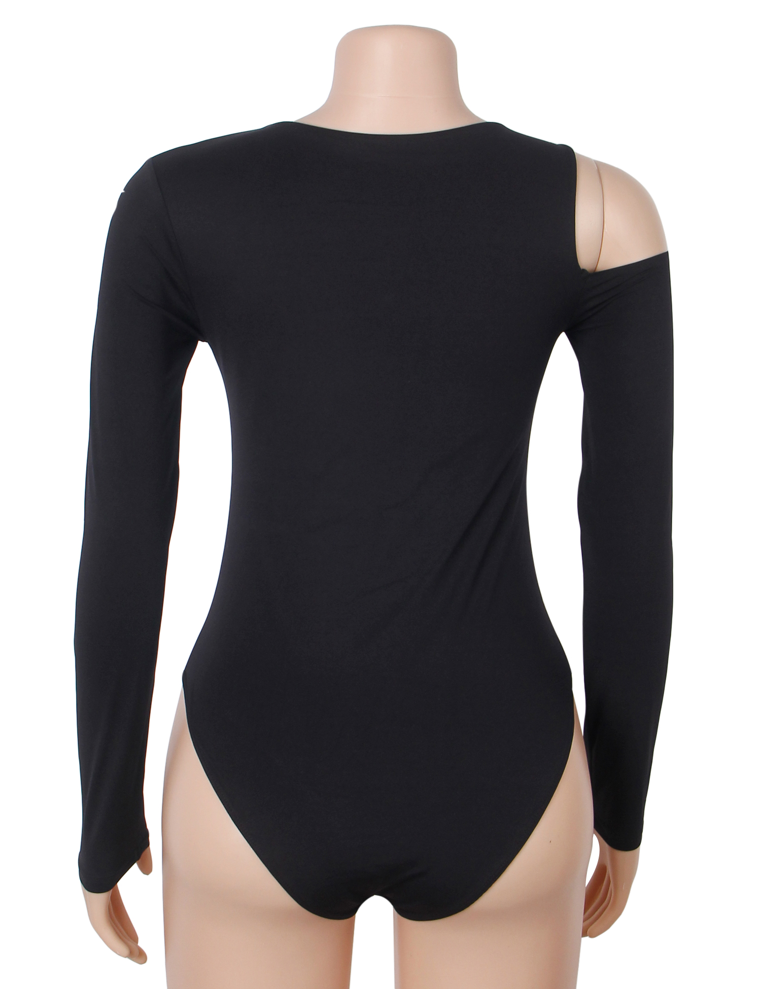 Black Sexy Round Neck Off-Shoulder Long Sleeve Form-Fitting Open-Crotch Bodysuit