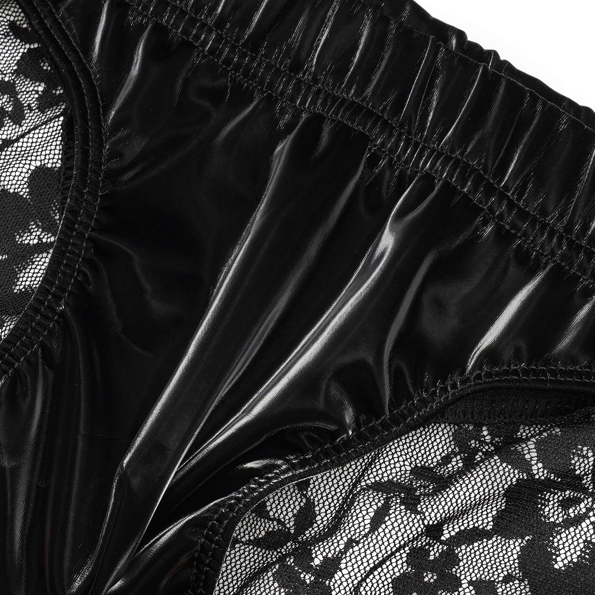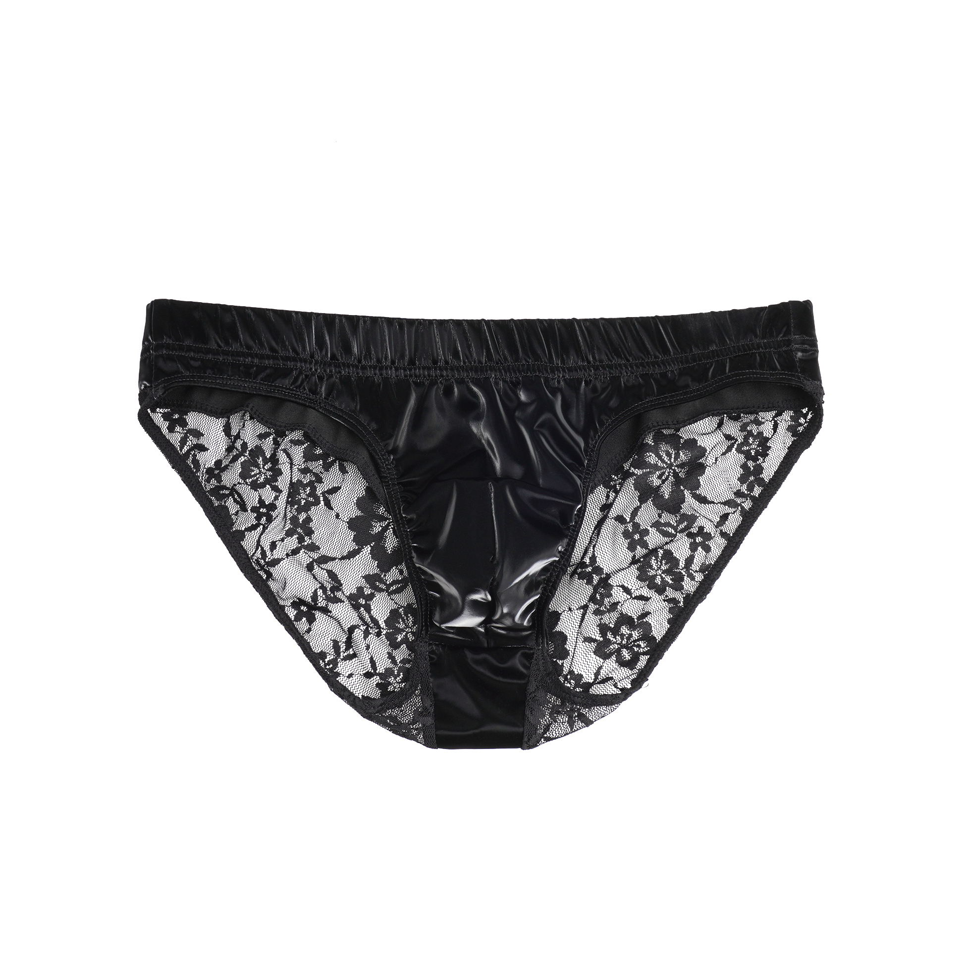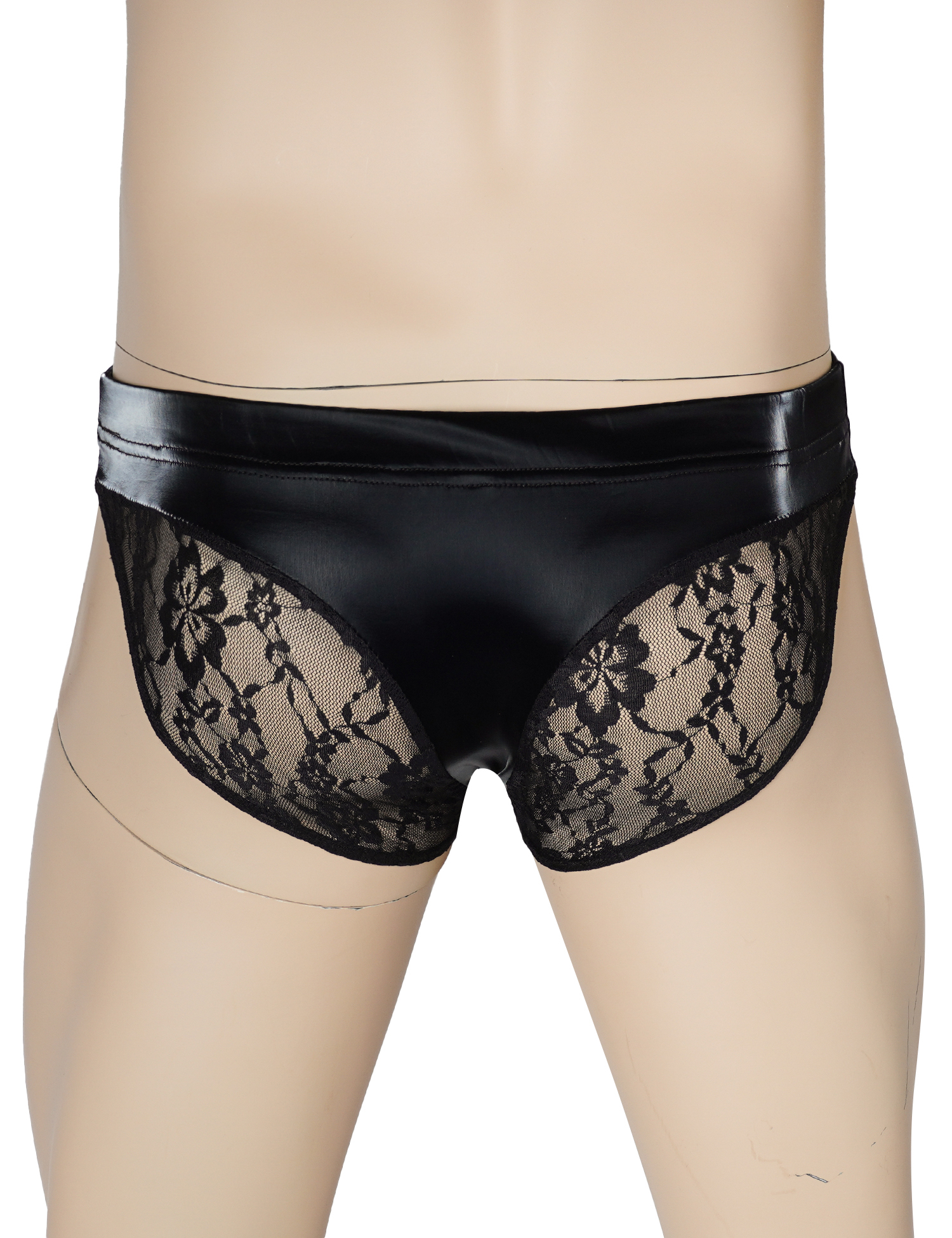 Black Sexy Faux Snakeskin Leathe Lace Men Underwear Thong