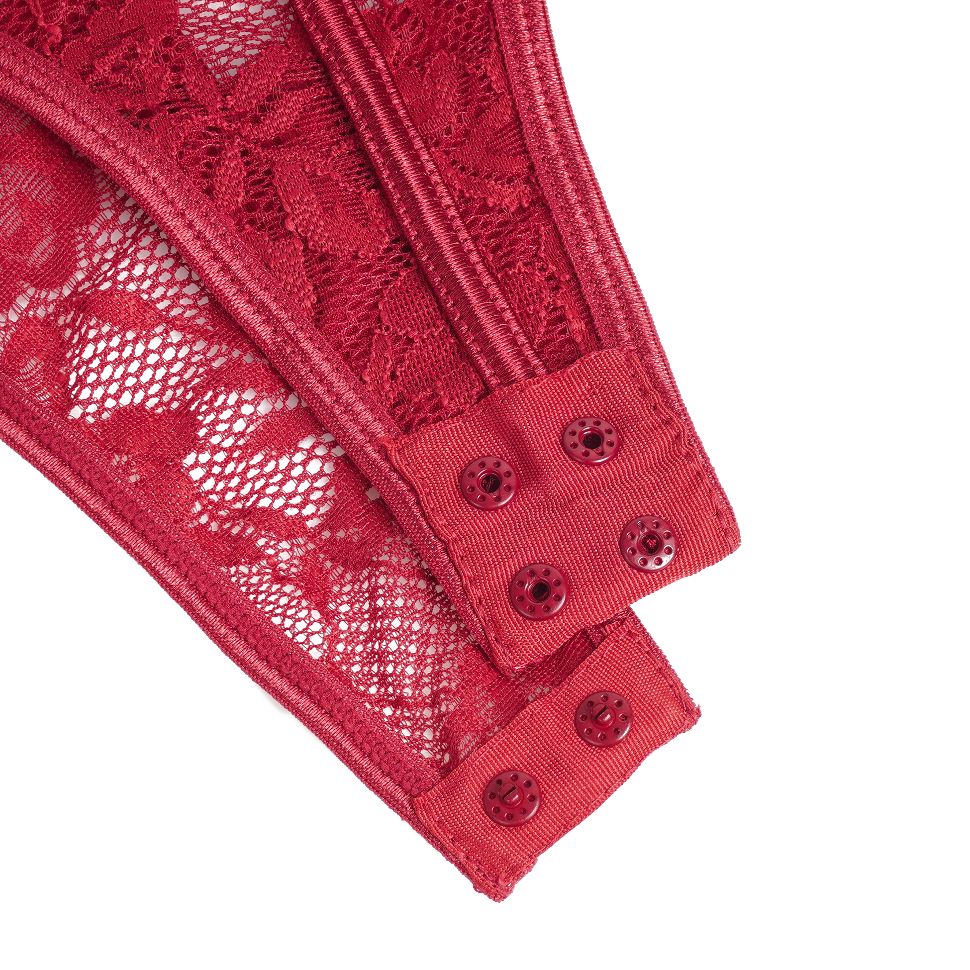 Burgundy Lace Square Neck Short Sleeves Open Crotch Bodysuit