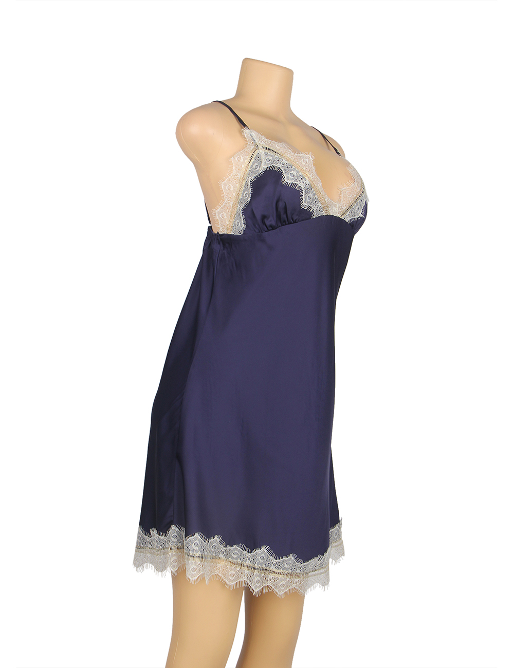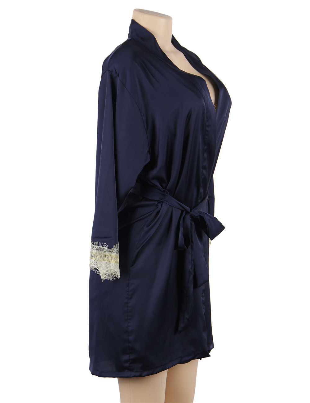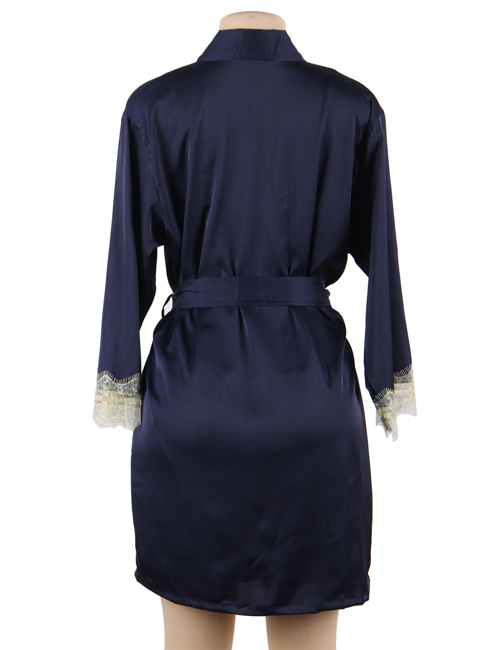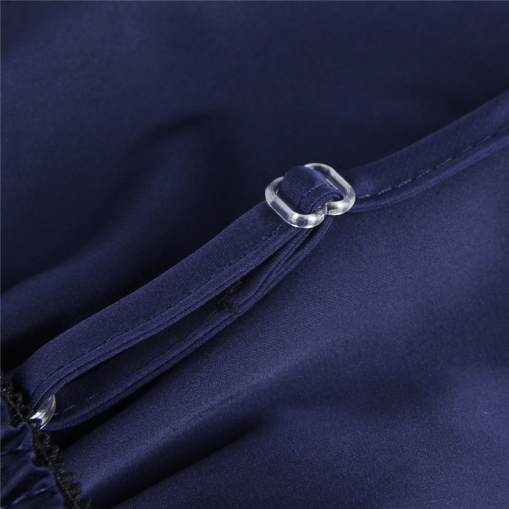 Dark Blue Silk Satin Lace Splice Sexy Women Two-piece Home Pajamas