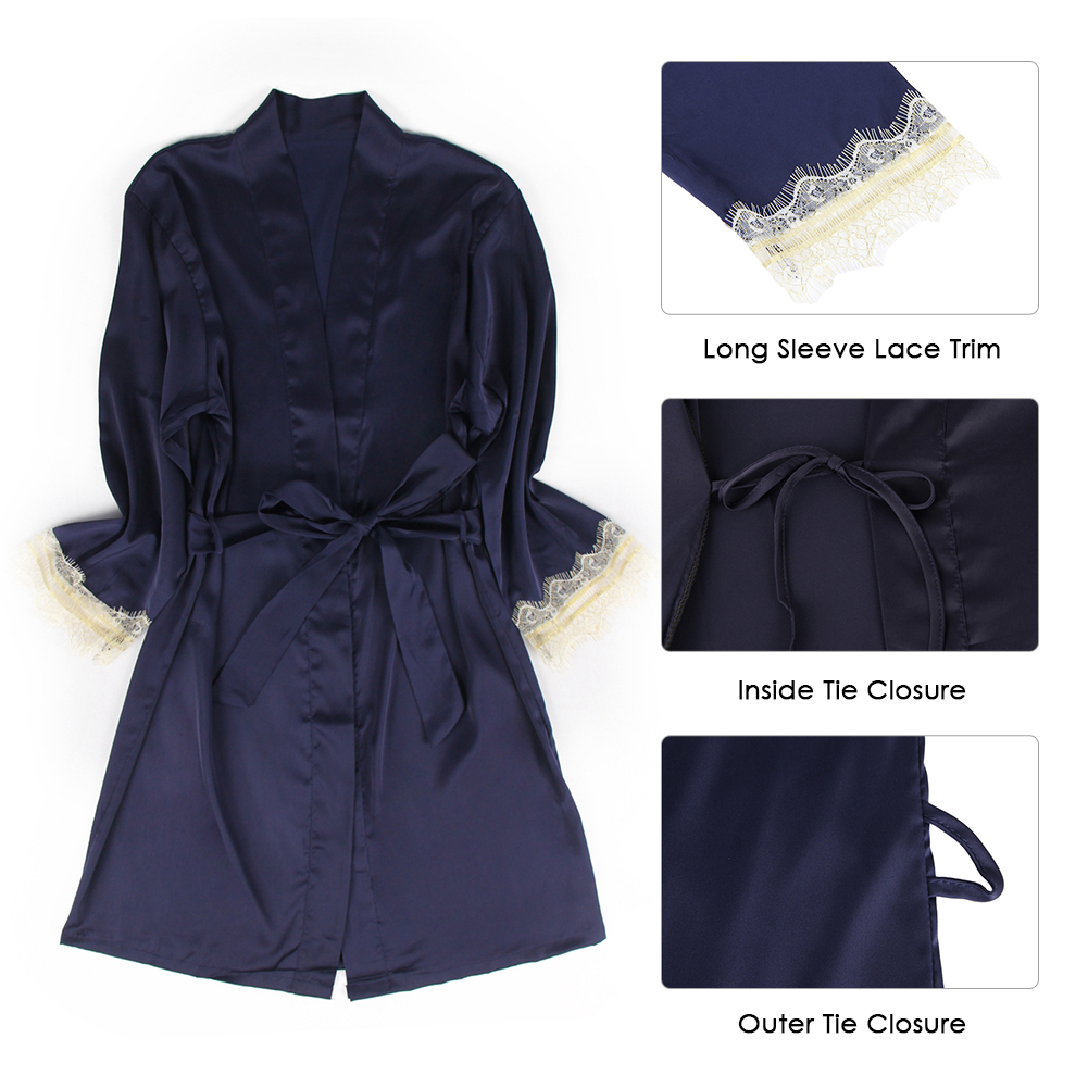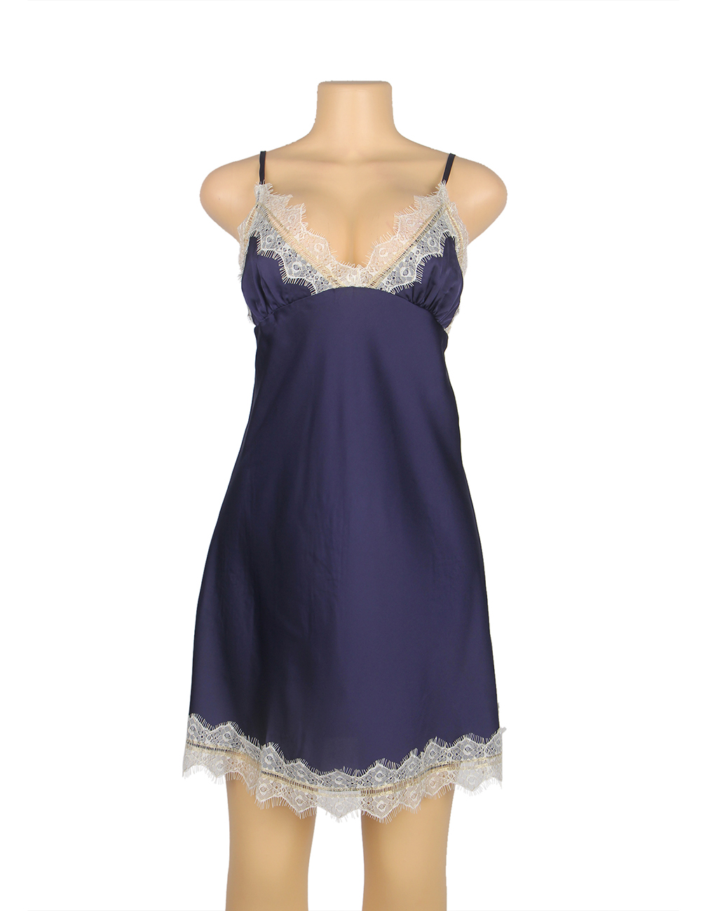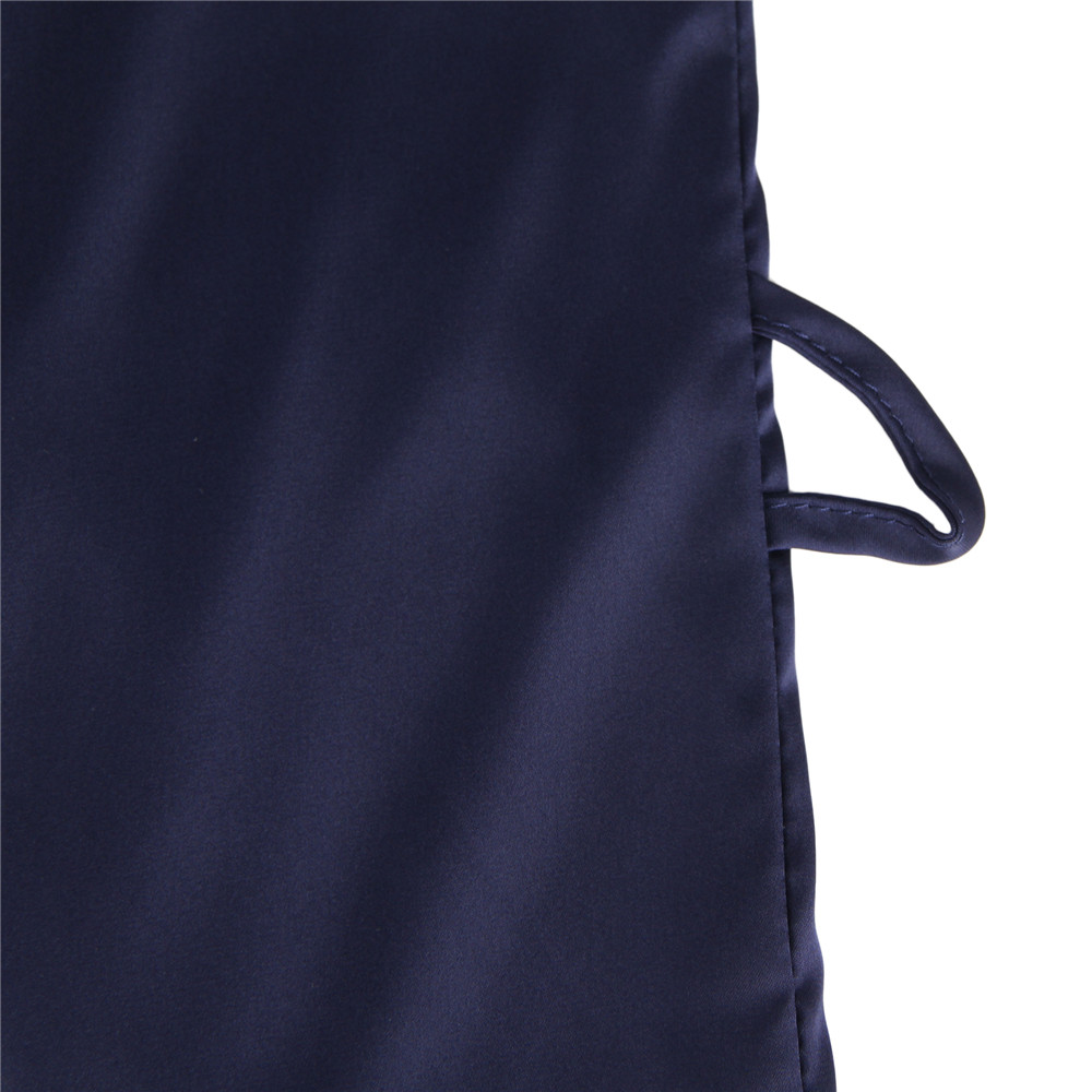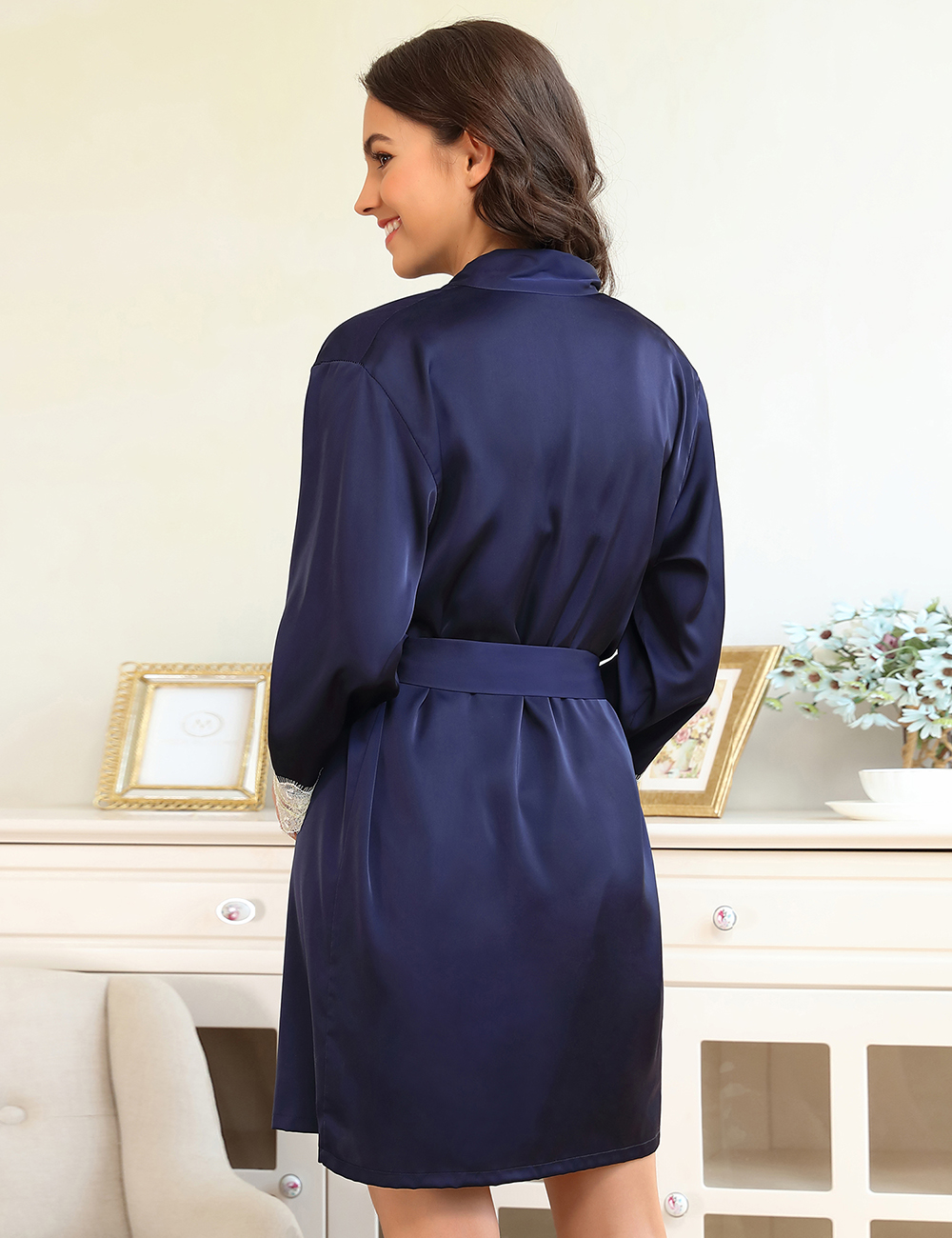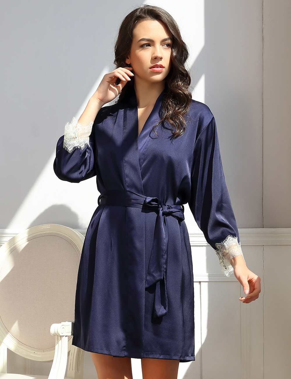 Dark Blue Silk Satin Lace Splice Sexy Women Two-piece Home Pajamas