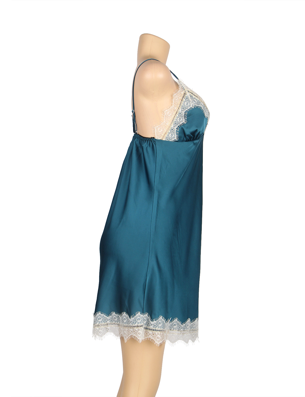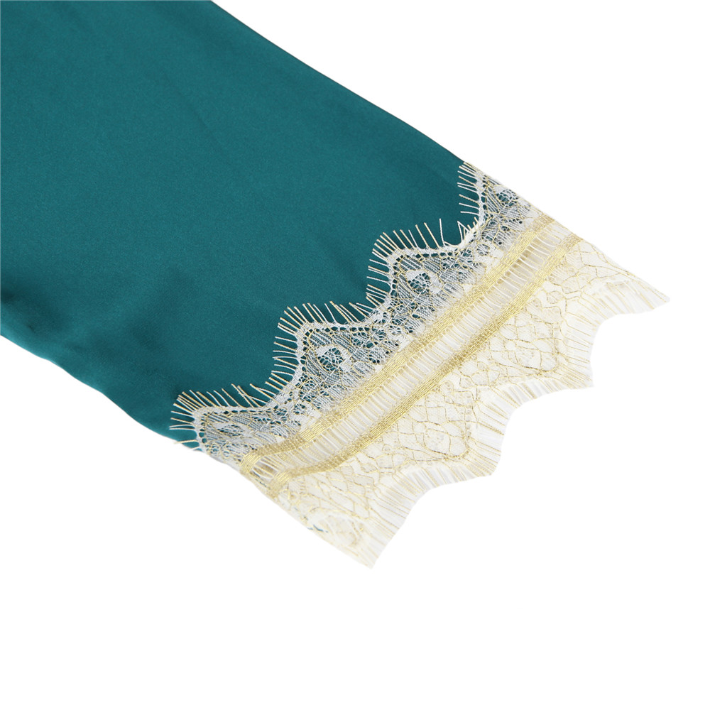 Green Silk Satin Lace Splice Sexy Women Two-piece Home Pajamas