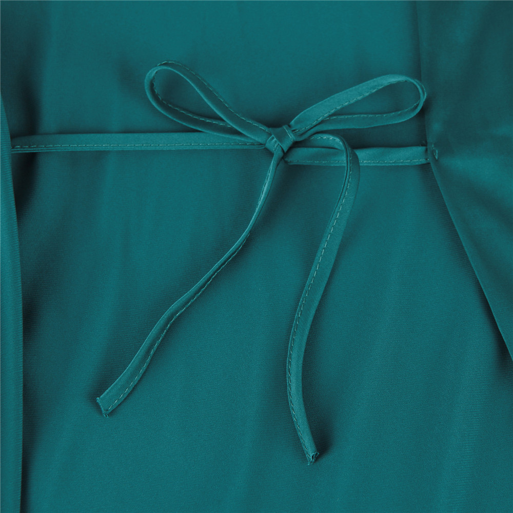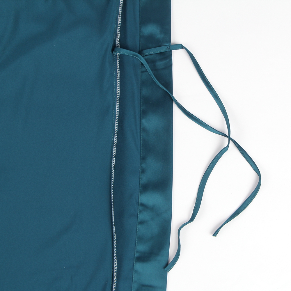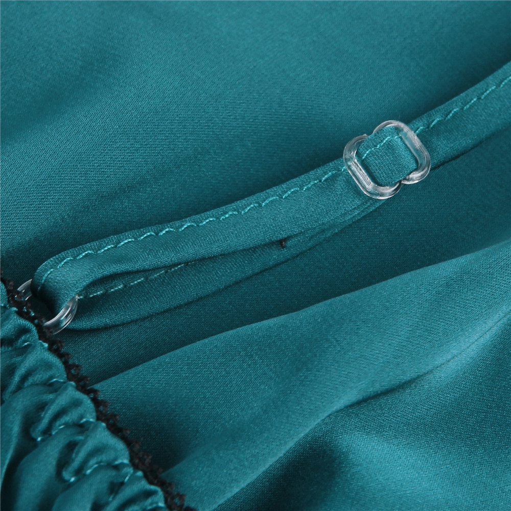 The R80925-4 Pajama set is available in four vibrant colors: black, red, blue, and green. Each color is made with encrypted imitation silk and features high-end eyelash lace cuffs. The set comes in sizes S-2XL, ensuring a comfortable fit for everyone.